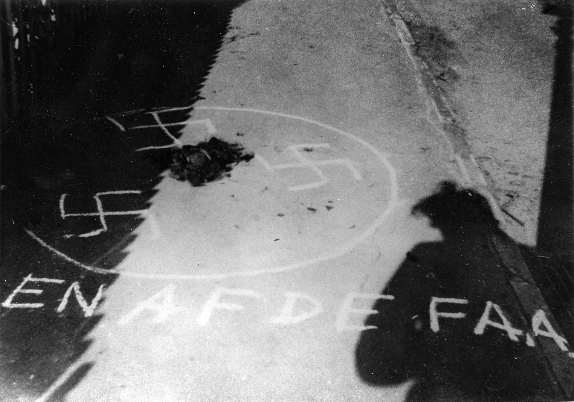 Efter befrielsen blev én af tyskerpigerne klippet skaldet og håret anbragt i en kridtcirkel på fortovet på Vesterbrogade ud for Feilbergsvej, Gilleleje