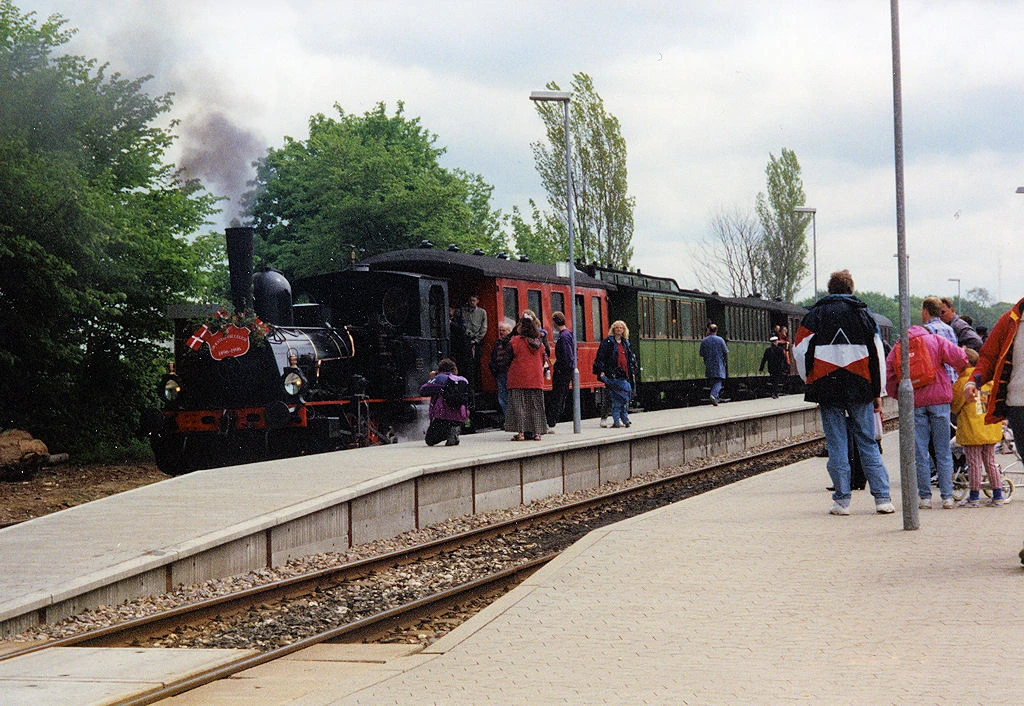 Gribskovbanens jubilæumsarrangement ved 100 års jubilæet for baneforlængelsen fra Græsted til Gilleleje, 1996. Nordsjællands Veterantog stod for kørsel med jubilæumstoget. Samtidig med jubilæet var der officiel åbning af Nordsjællands Veterantogscenter i Græsted. Lokomotivet er ØSJS nr. 6. Det blev udstillet/præsenteret af Dansk Jernbane-klub/Vestsjællands Veterantog idet typen er næsten identisk med Gribskovbanens tidlige lokomotiver. Foto: Hakon Schultz