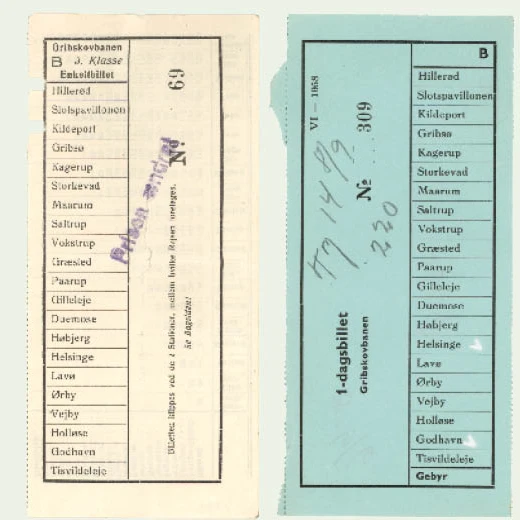 Kilde: Gribskovbanen, skrevet af Ole-Chr. M. Plum og Lars Viinholt Nielsen, Dansk Jernbane-Klub, 2009